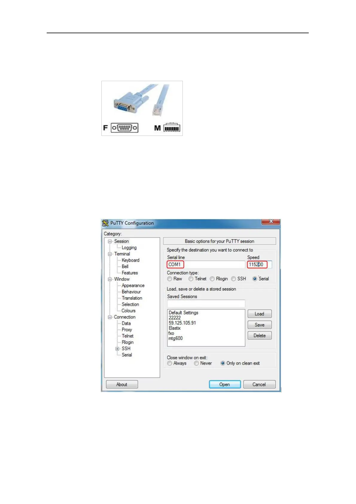 Herein we take the PuTTY as an example. Detailed configurations are as follows