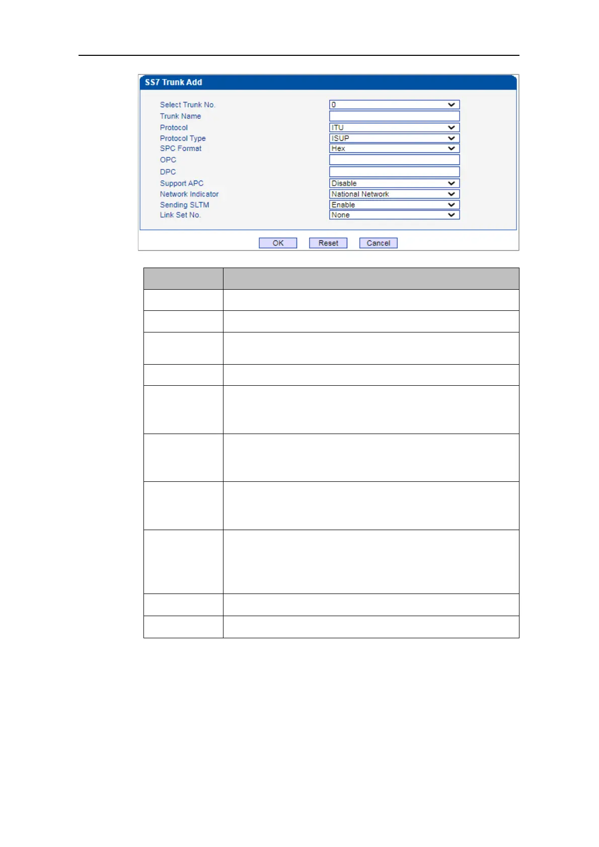 The No. of the SS7 trunk. Generally, one SS7 trunk is for one DPC.