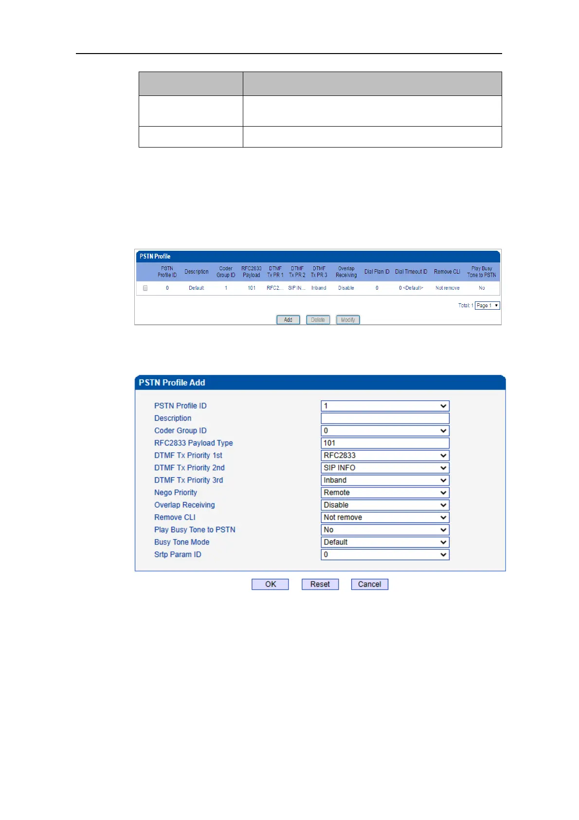 Click the Add button to add a new PSTN profile.