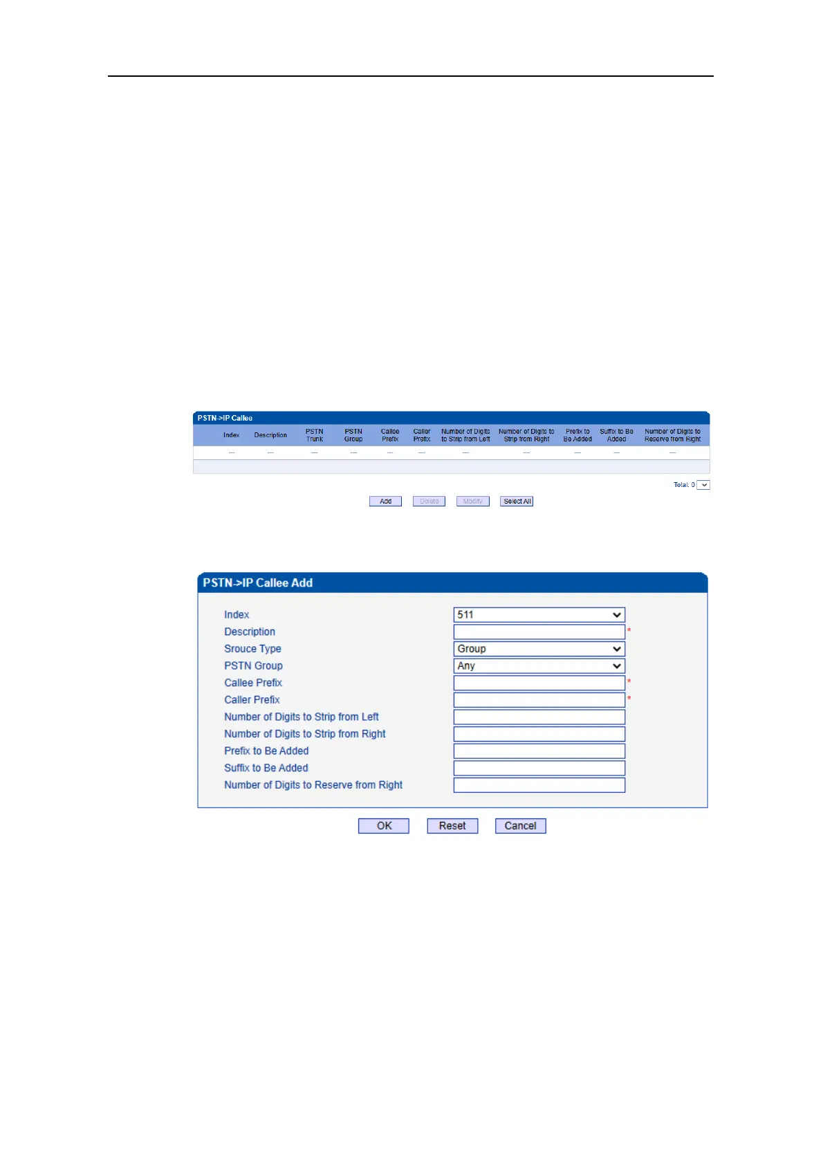 PSTN->PSTN Callee/Caller, and IP->PSTN Callee/Caller. According to the call routing