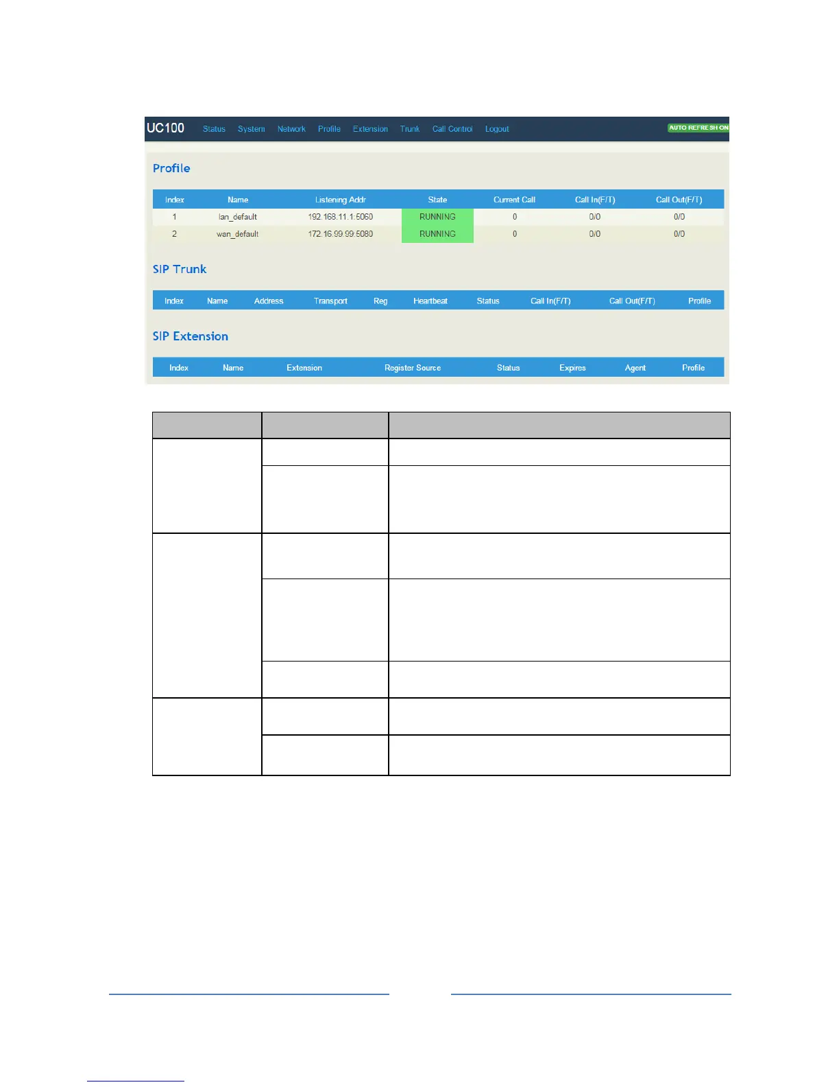 SIP extension is registered or not.