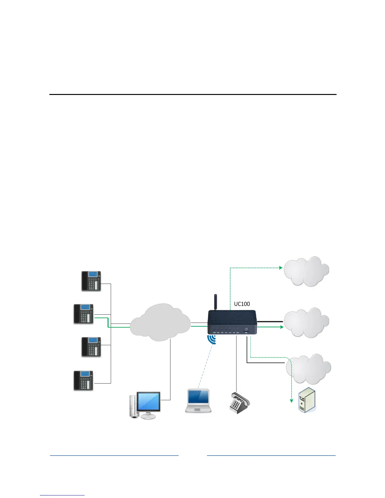 UC100 provides high-quality and cost-effective VoIP solution. Its application scenario is shown as follows: