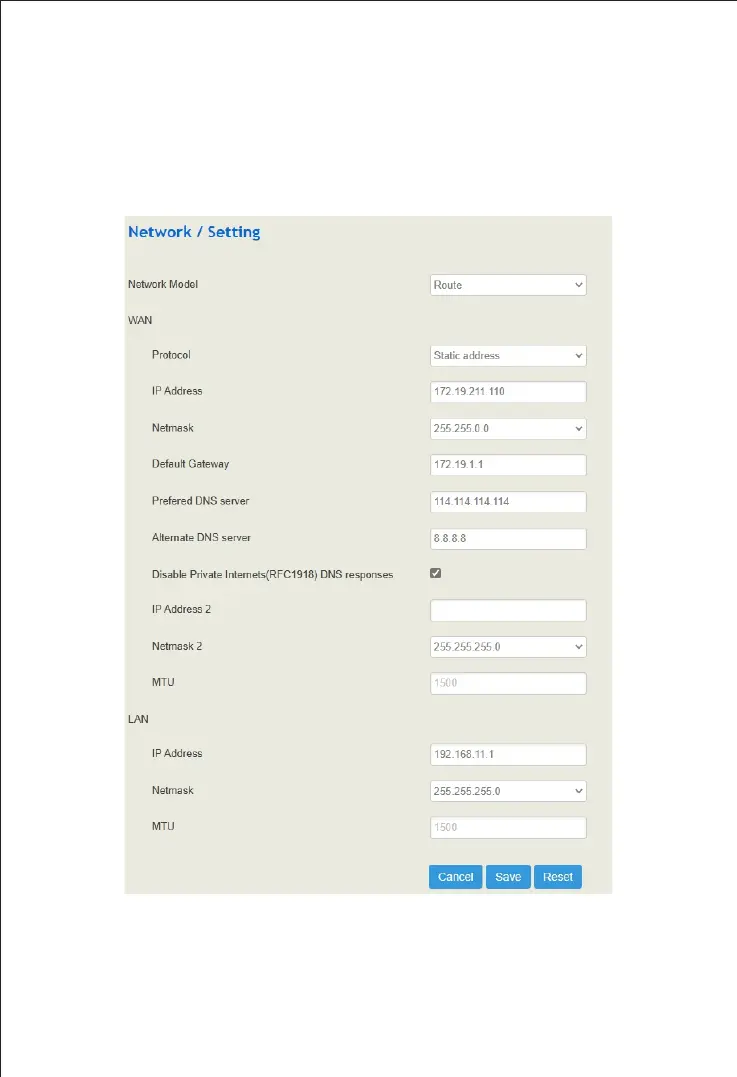 IP addresses of network ports. Click “Save” and "reset" to make the settings take