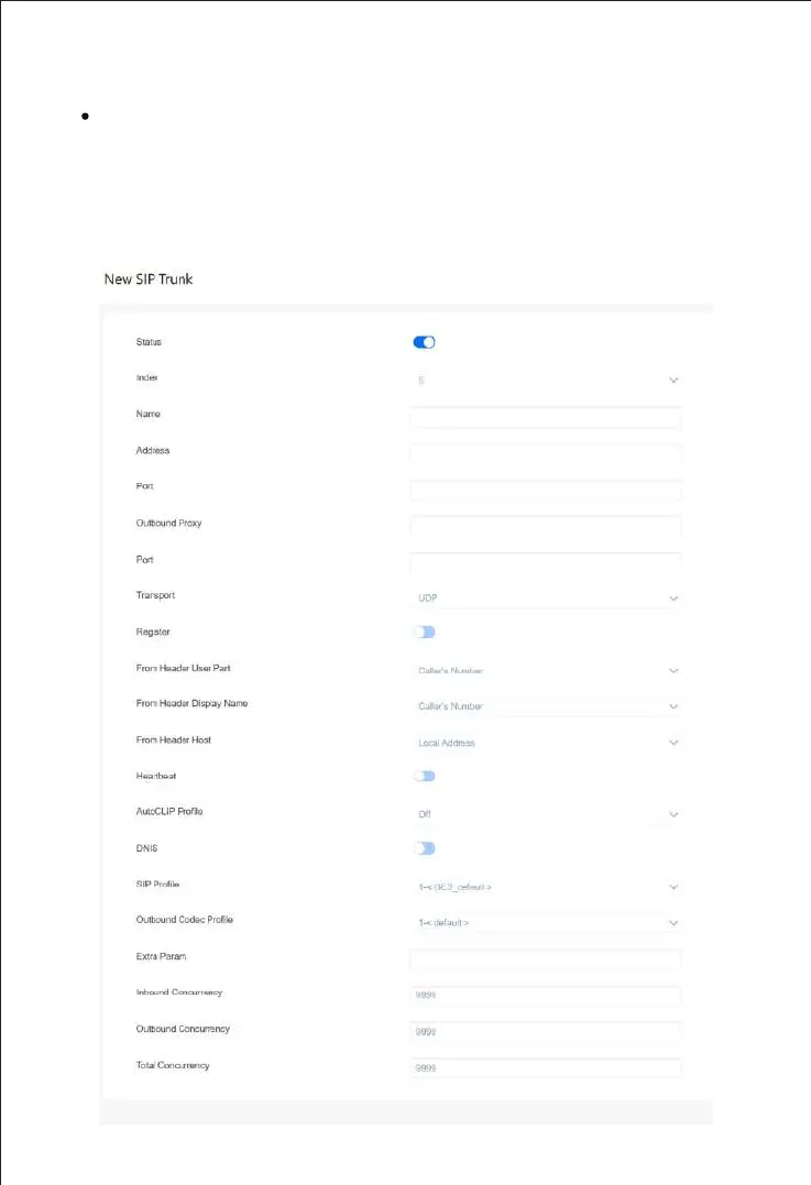 SIP trunks are used to connect other SIP terminals or service providers. When adding a