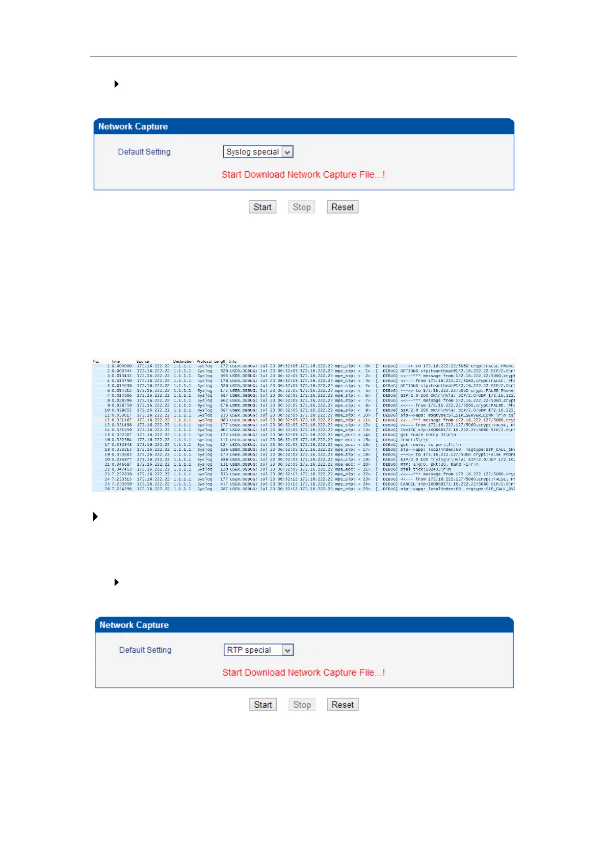 Click Start to enable RTP capture