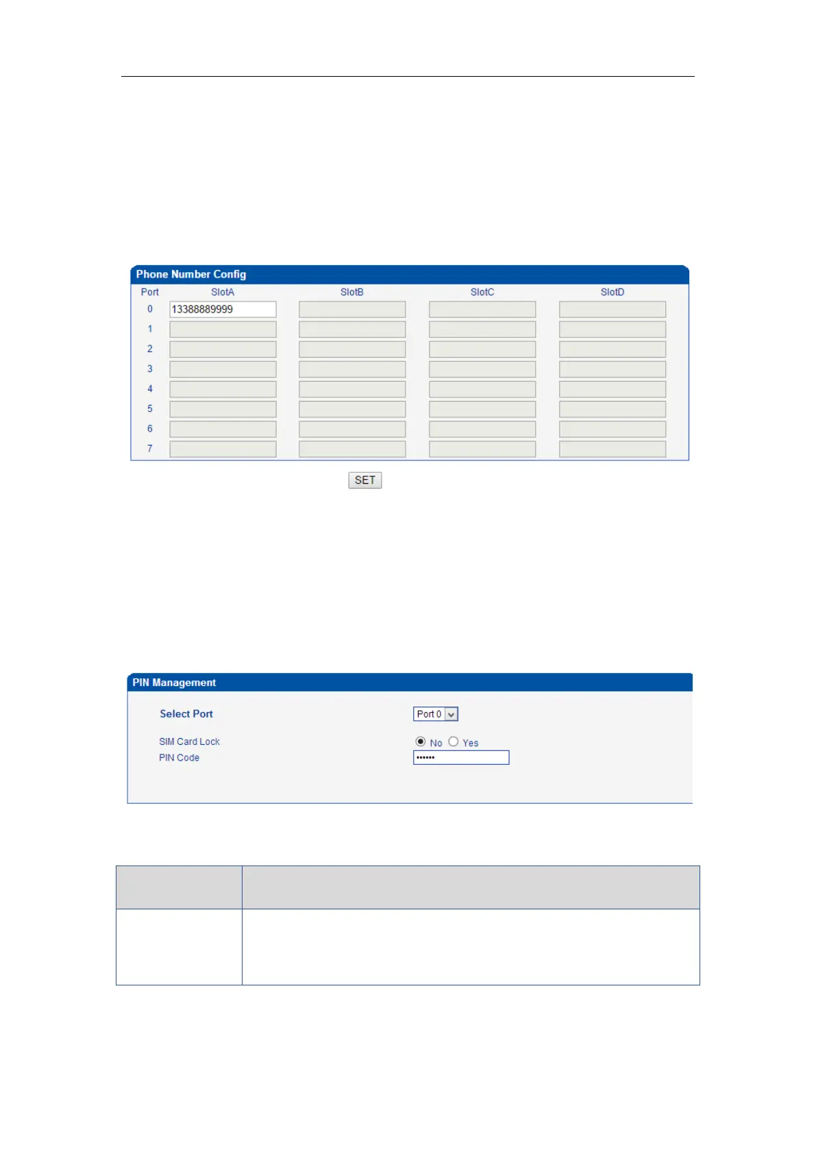 On the following interface, you can set a PIN code for the SIM card of the selected port.
