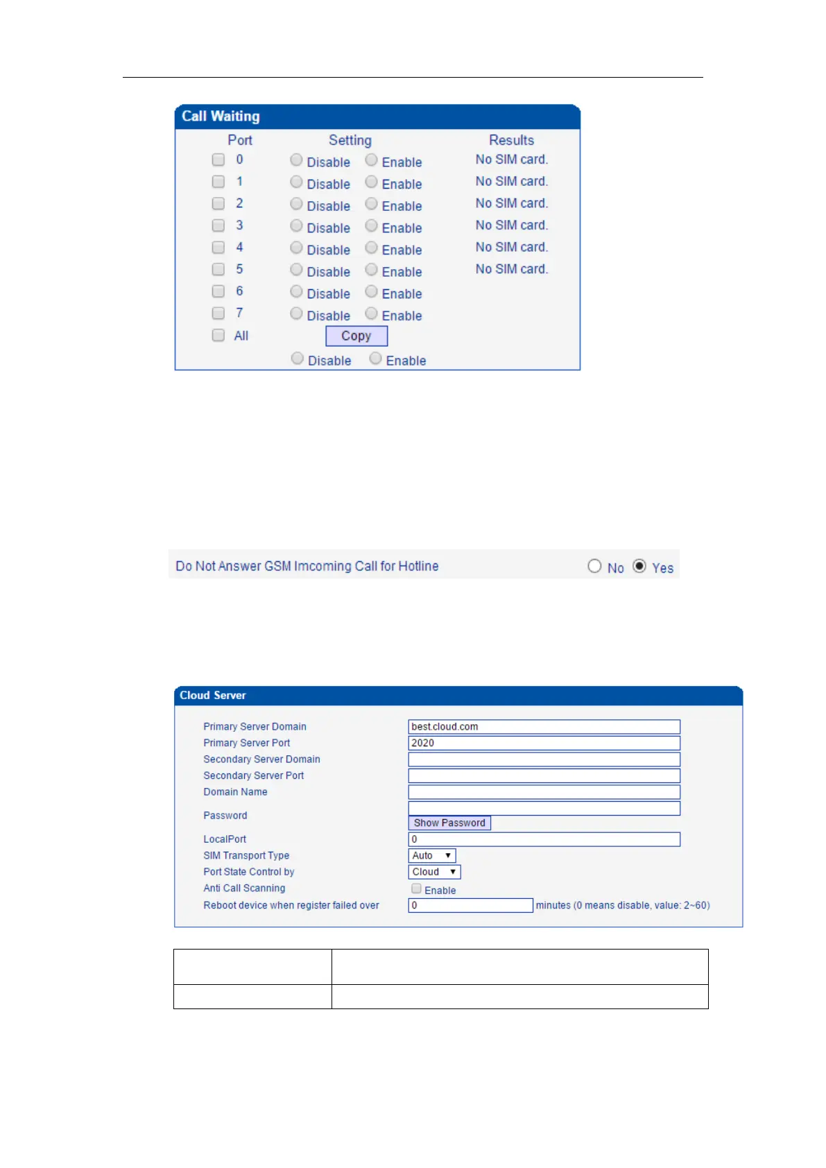 Users need to configure the cloud server when the gateway works with SIM Bank or