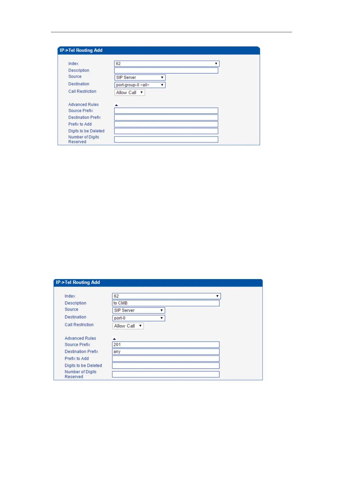 Source Prefix: to match with prefix of caller number