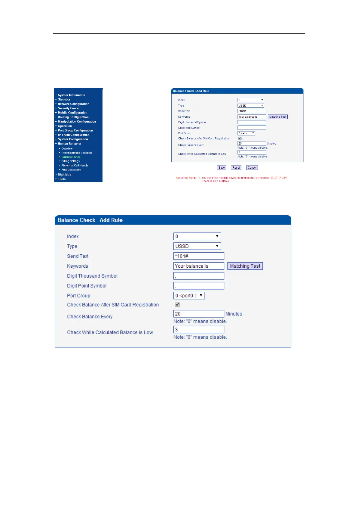 response: “Your balance is 73.40$”. So configured the Keywords to “Your