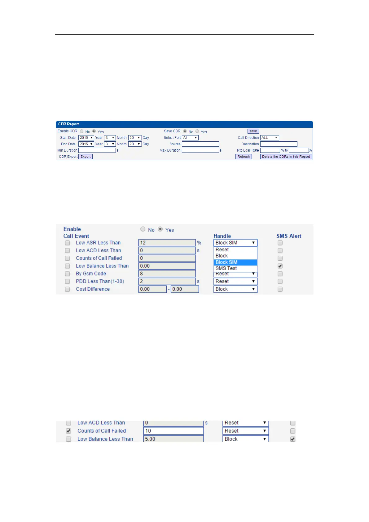 Open the web of the gateway, and then click “Statistics” and “CDR Report”. Then enable