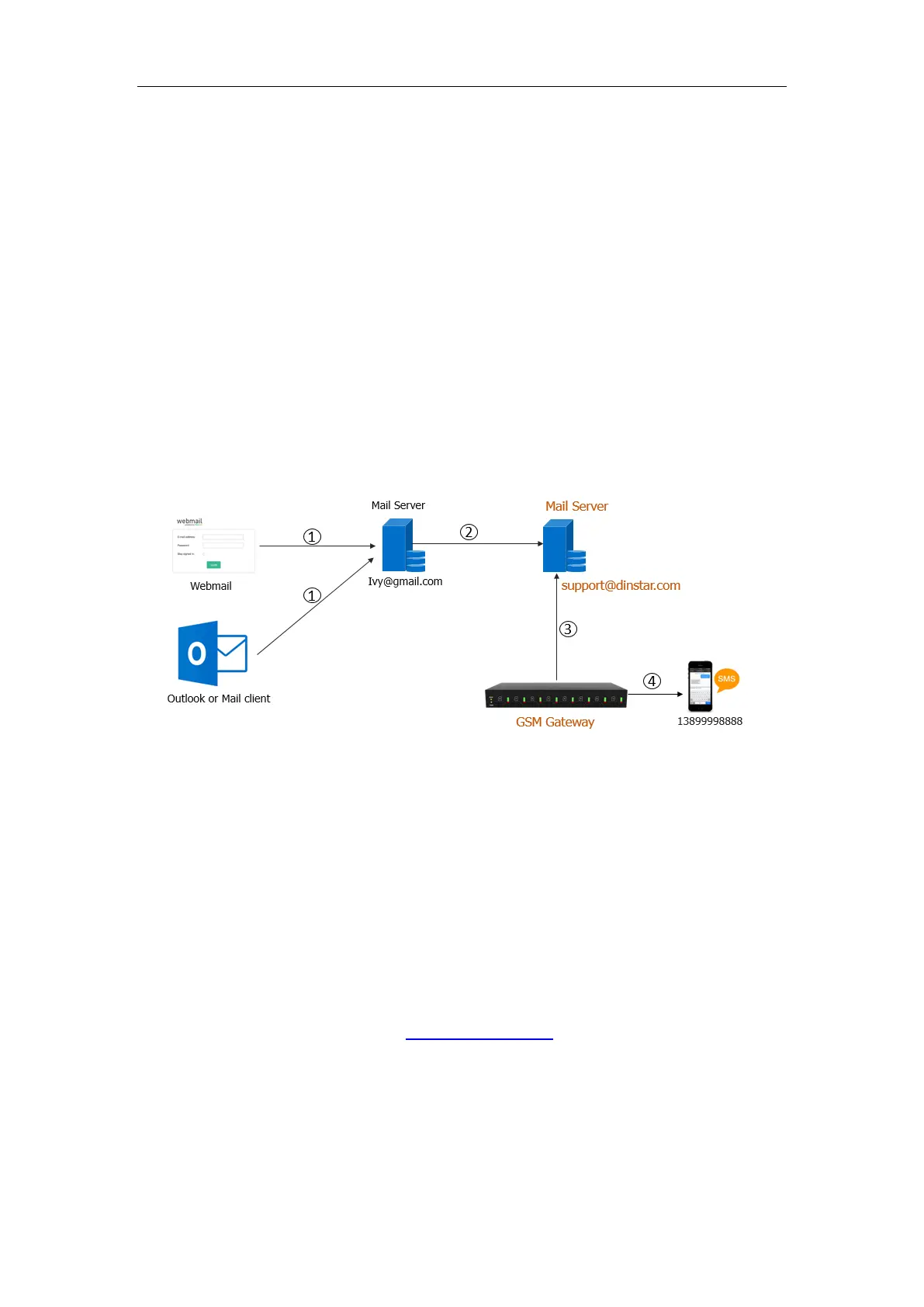 2) Gmail server forward email to support@dinstar.com