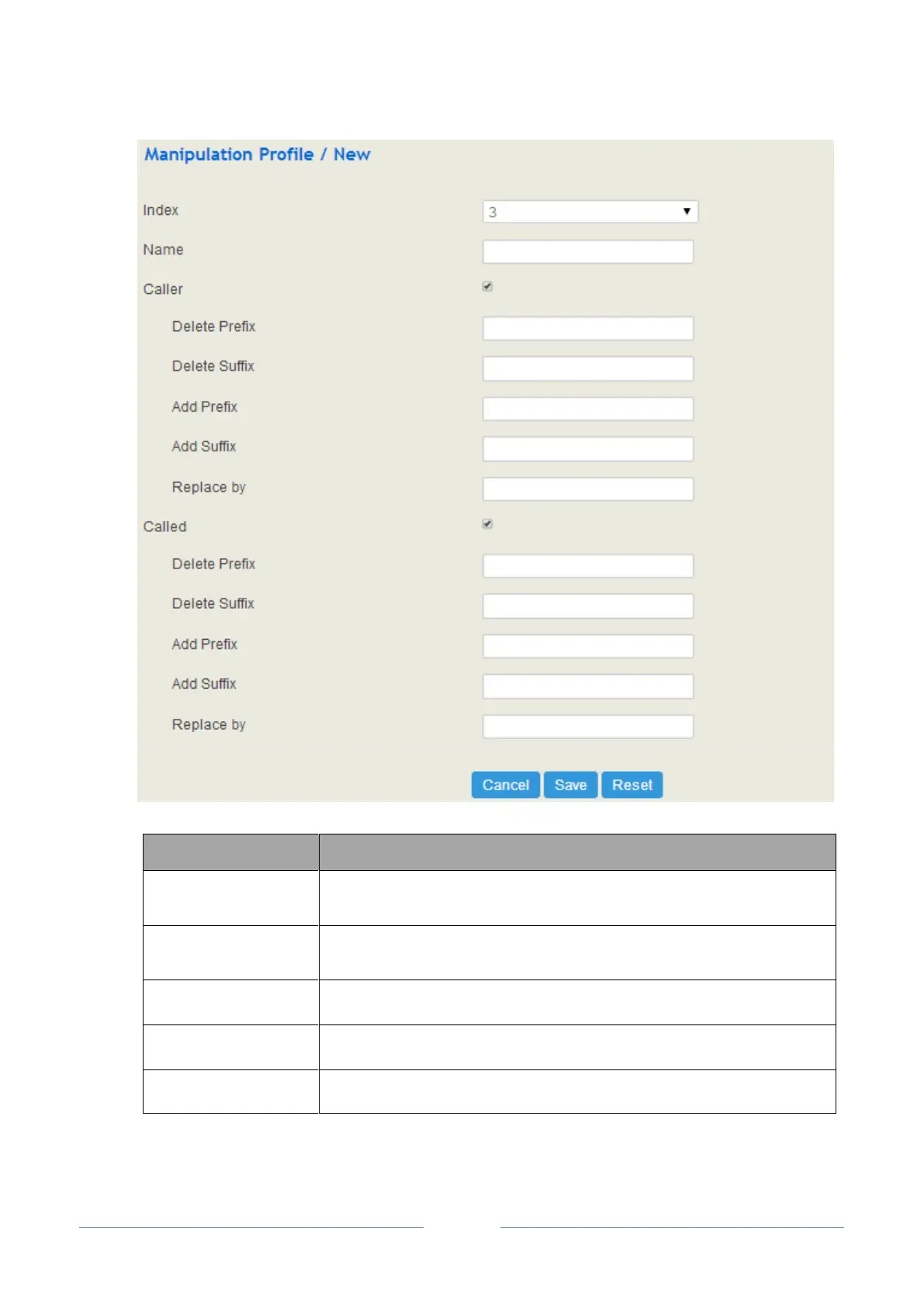 The number of digits that are deleted from the left of the caller number or