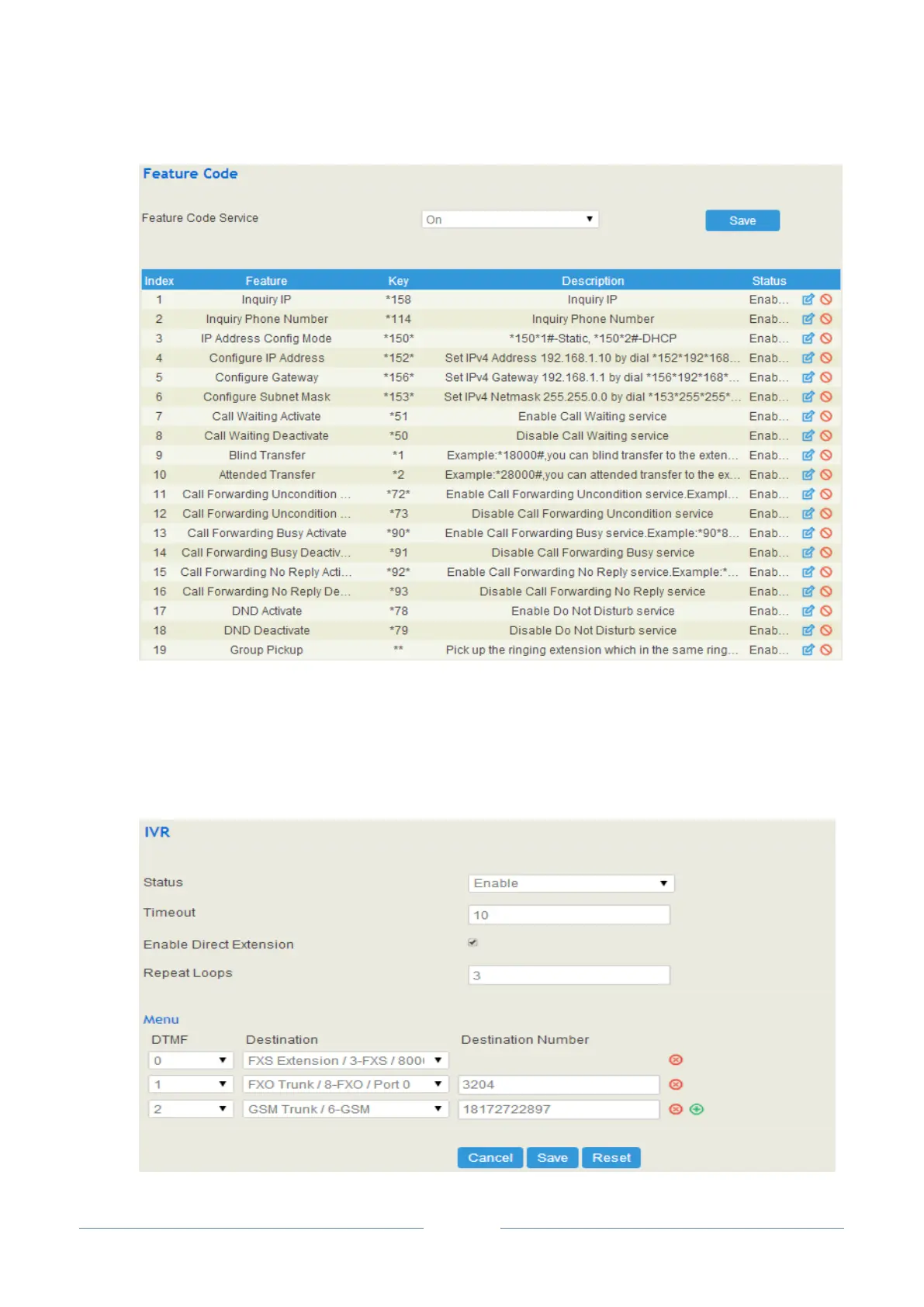 On the IVR interface, you can carry out specific configurations for the IVR which has been uploaded from