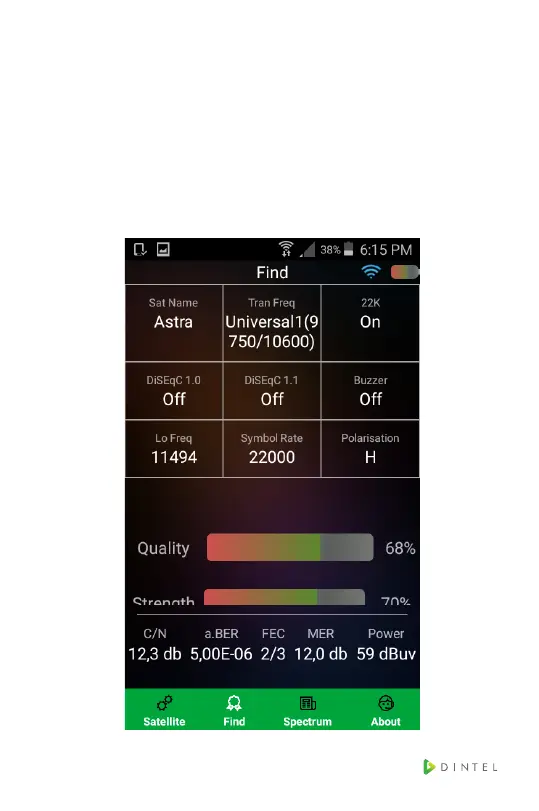 “sat name” to switch satellite. Press “Tran Freq” to