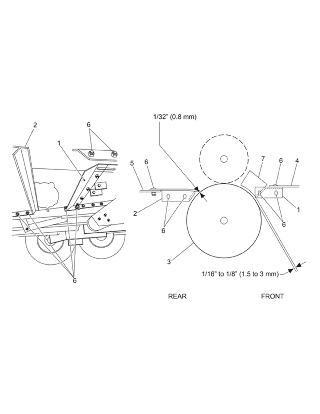 (1.5 to 3) between the front half bottom plate and the lower roll (item 3) as shown below.