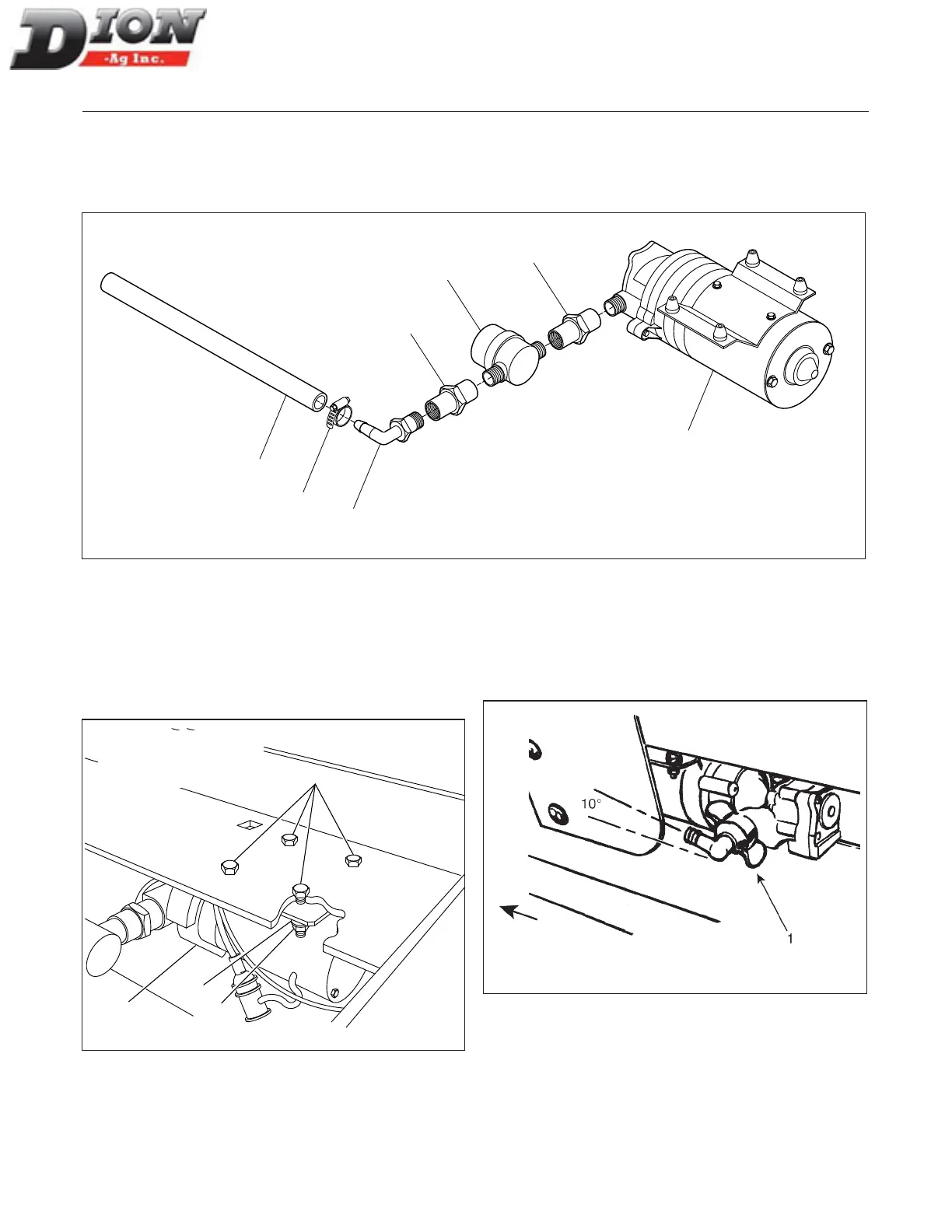 Connect the two adaptors (item 6) to the lter (item 1) with the water ow arrow towards the pump (item 2). Install