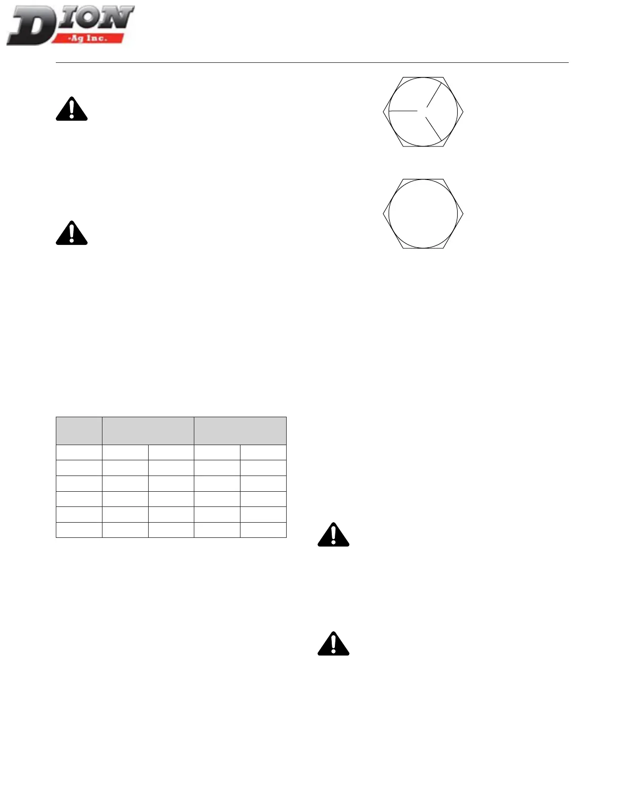 The table below gives the correct torque values for bolts
