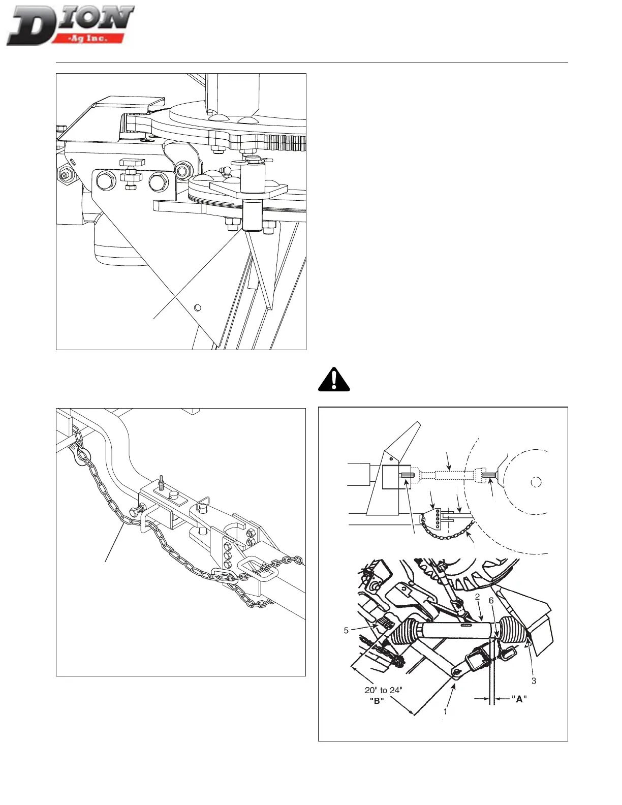 2). Align the telescopic PTO (item 2) and the tractor PTO