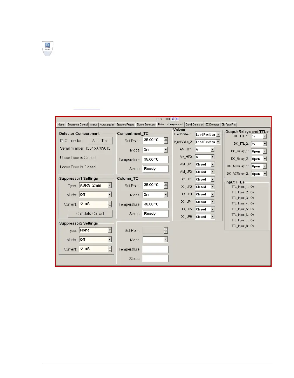 2. To display the DC Control panel, select the Detector Compartment tab (see