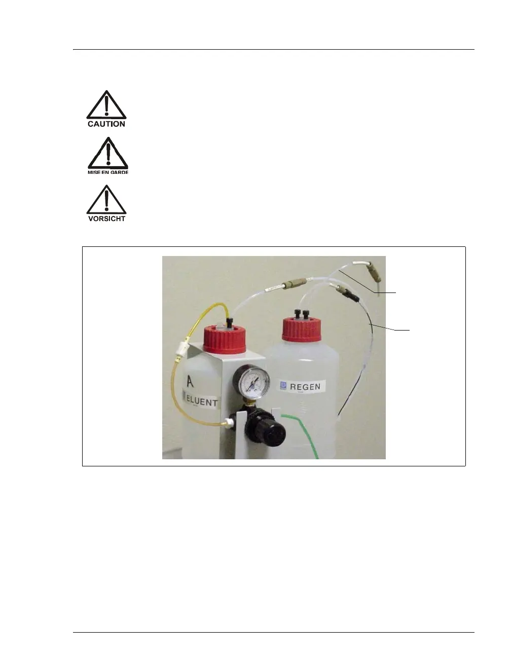 Ne mettez jamais les réservoirs d'éluants sous une pression