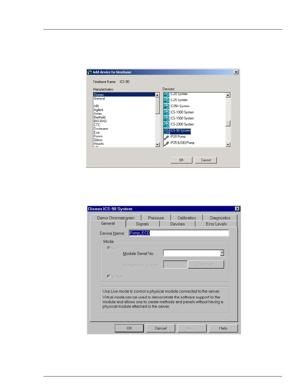 4. Select Dionex ICS-90 System from the list and click OK. A dialog