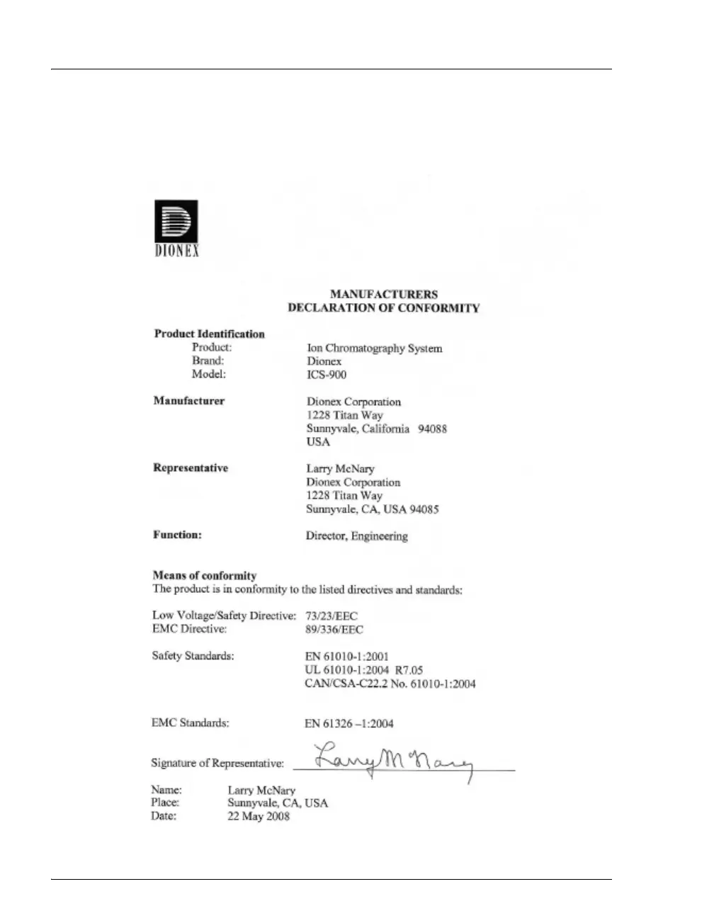 Dionex ICS-900 - Declaration of Conformity