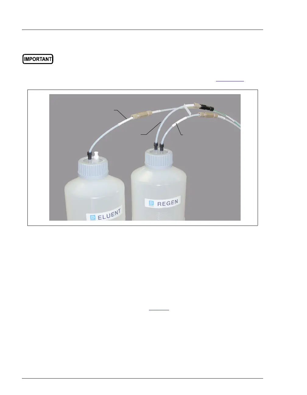 10.Verify that the liquid lines from the ELUENT and REGEN bottles are