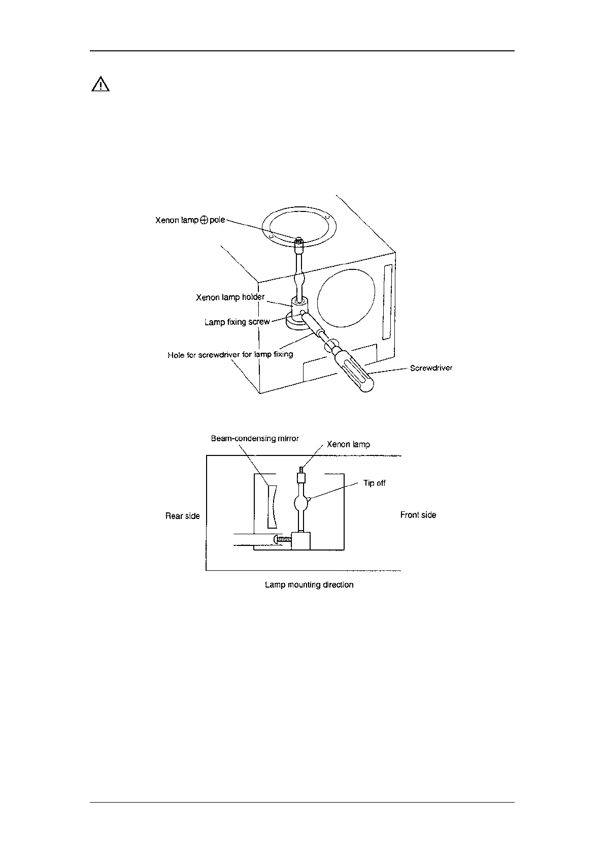 (6) Tighten the lamp mounting screw with the screwdriver through the hole for
