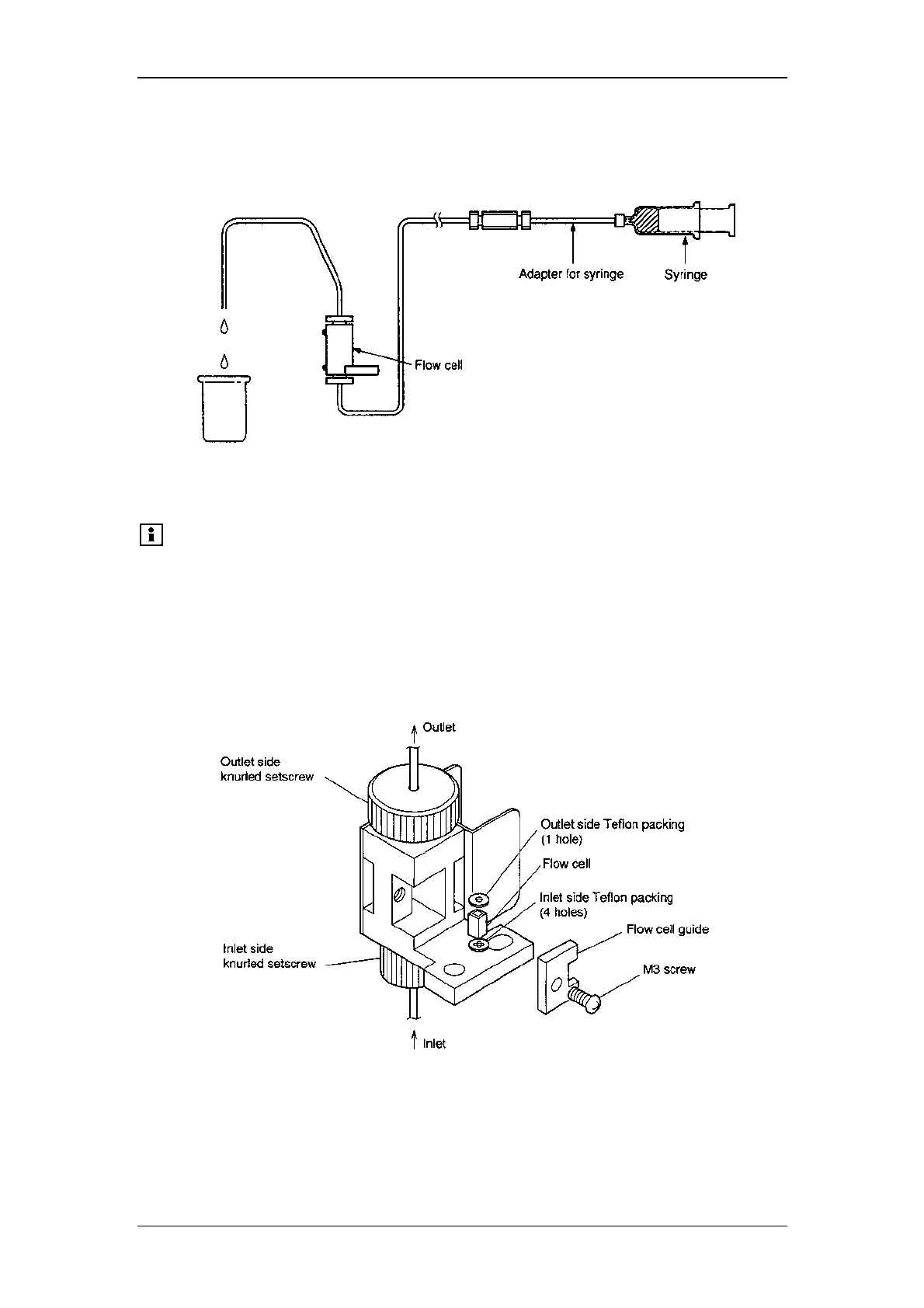 (3) Soak the flow cell new inlet side Teflon packing and outlet side Teflon packing
