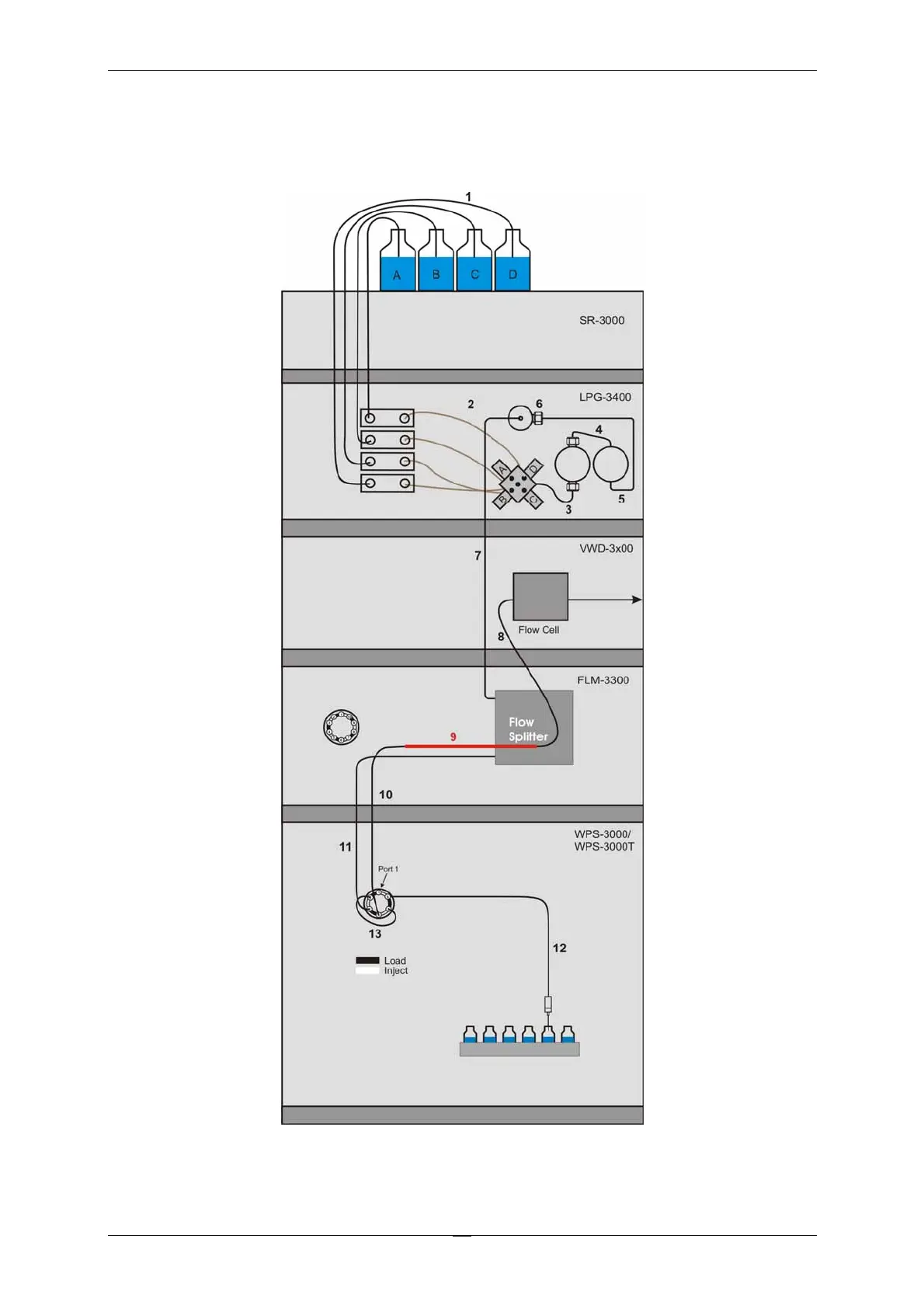 an example of the fluid connections for nano HPLC, also refer to Fig. 10 ( page 23).