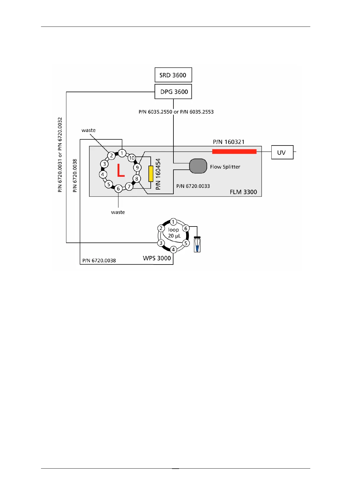 Fig. 13: Fluid connections for preconcentration (nano HPLC, standard devices)