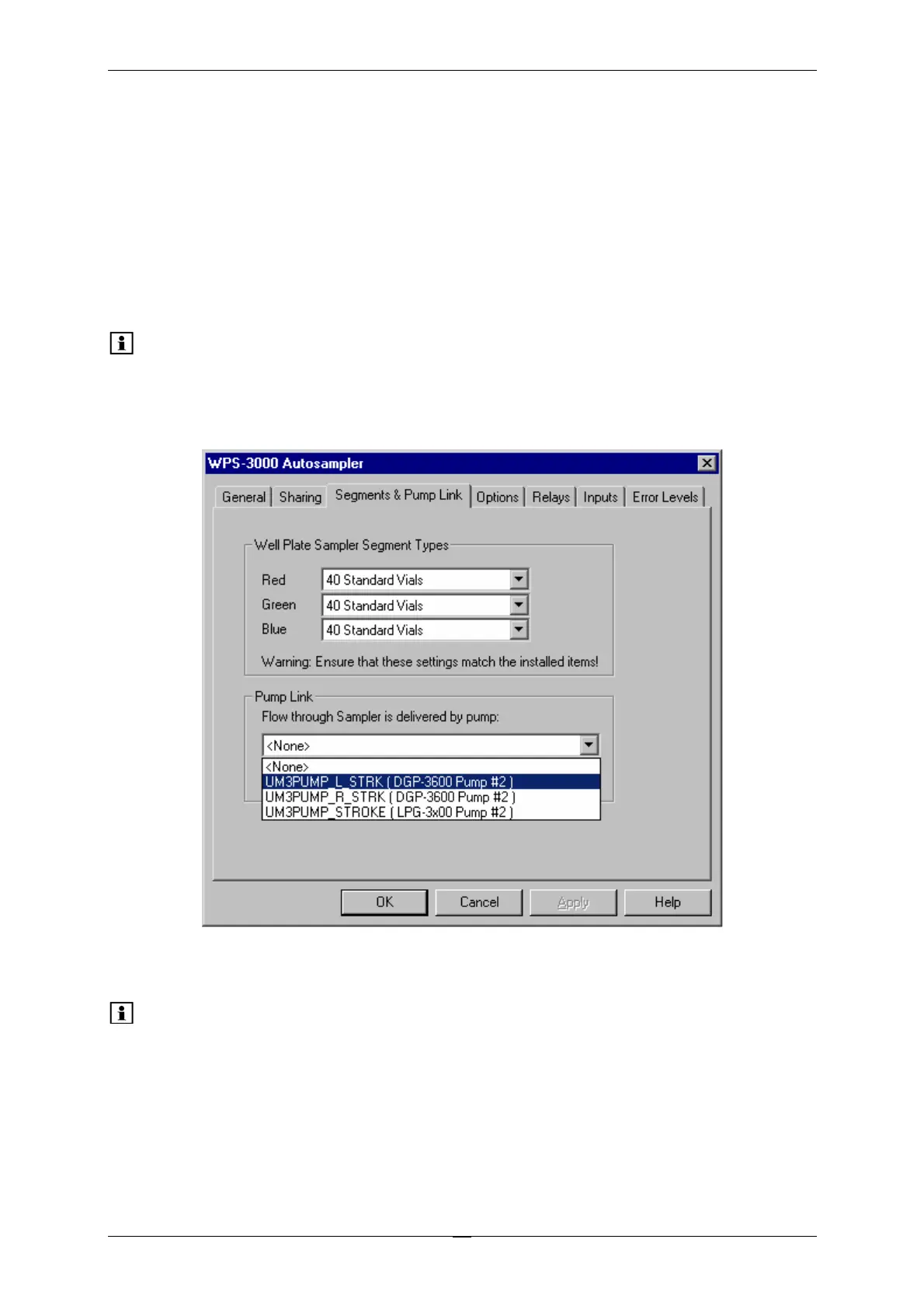 On the Segments & Pump Link tab page of the autosampler's properties, determine which