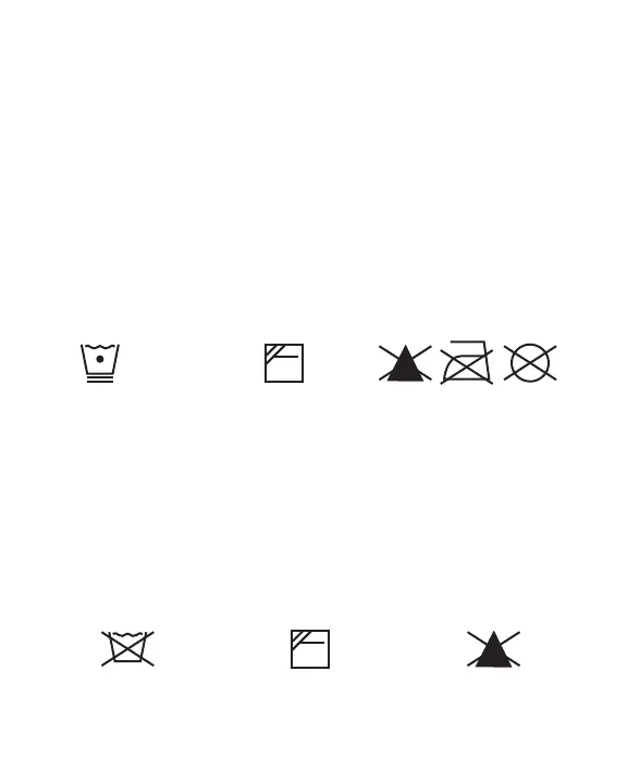 stockage. NE PAS blanchir, repasser ou nettoyer à sec.