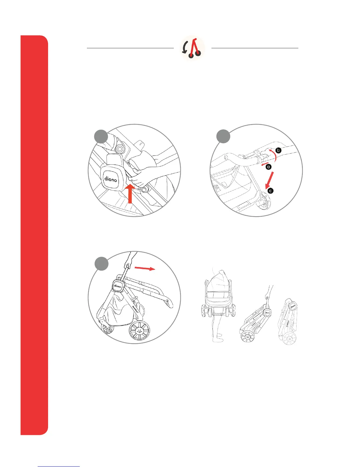 (c) Twist center of handle to fold.