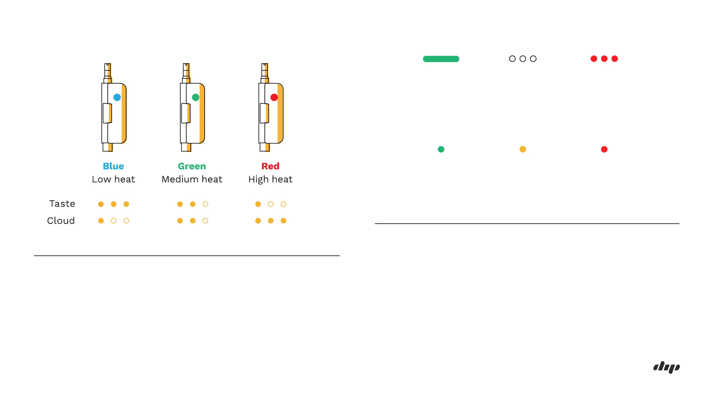 While in use: solid color indicating current power setting