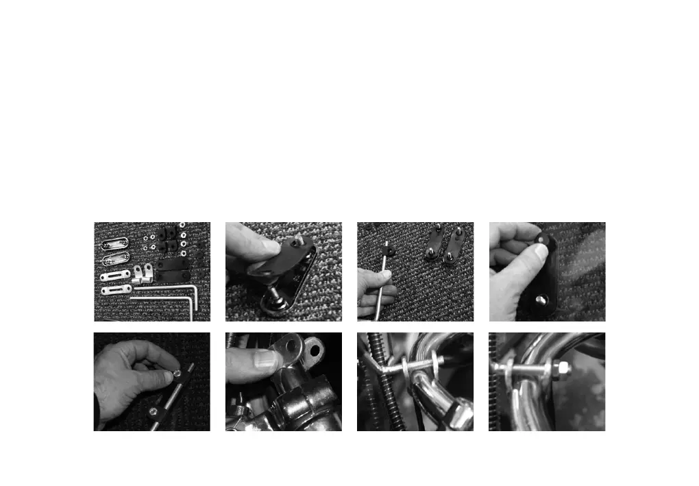 lugs with the nuts provided. Attach the thin metal bracket around the handle bars.