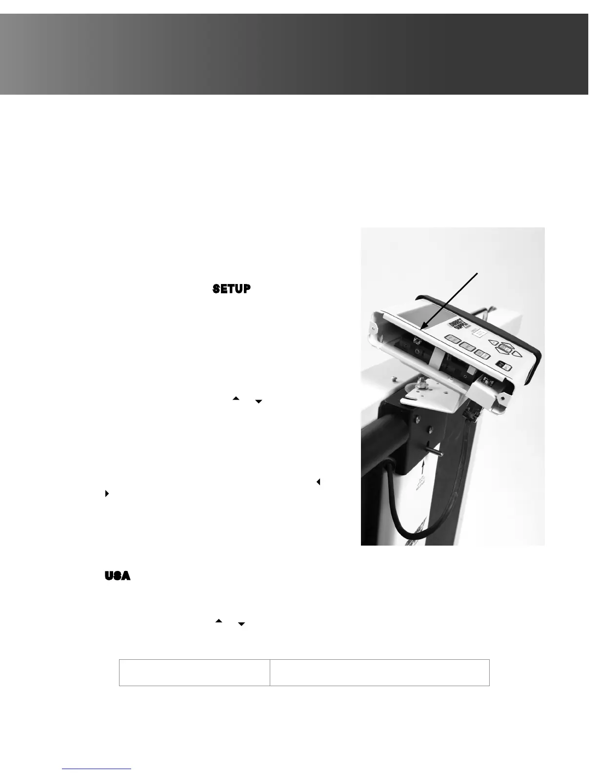 4. When display shows SETUP, release the