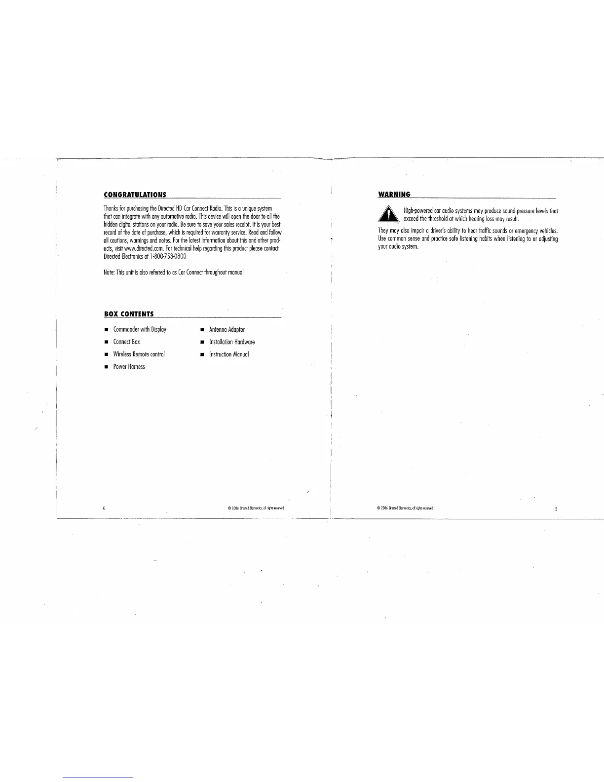 Directed DMHD1000 - CONGRATULATIONS; WARNING; BOX CONTENTS