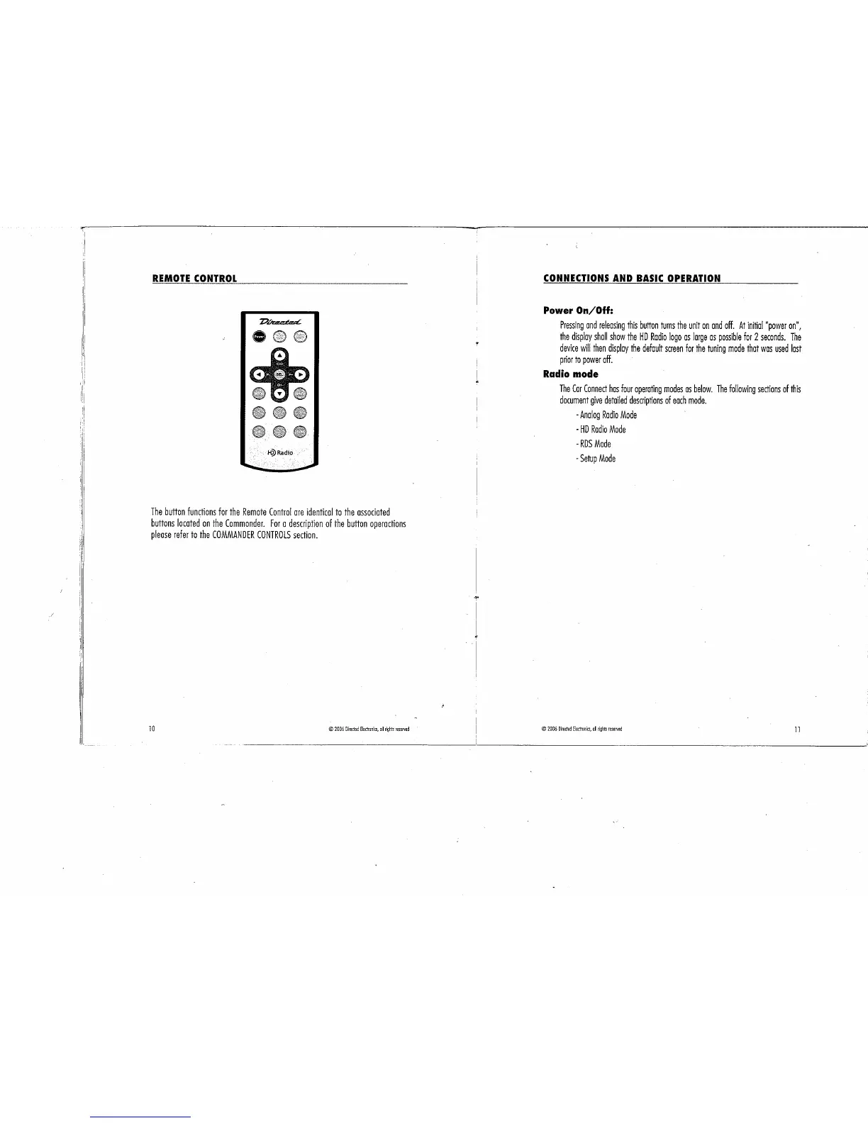 Directed DMHD1000 - CONNECTIONS AND BASIC OPERATION; Power On;Off; Radio mode