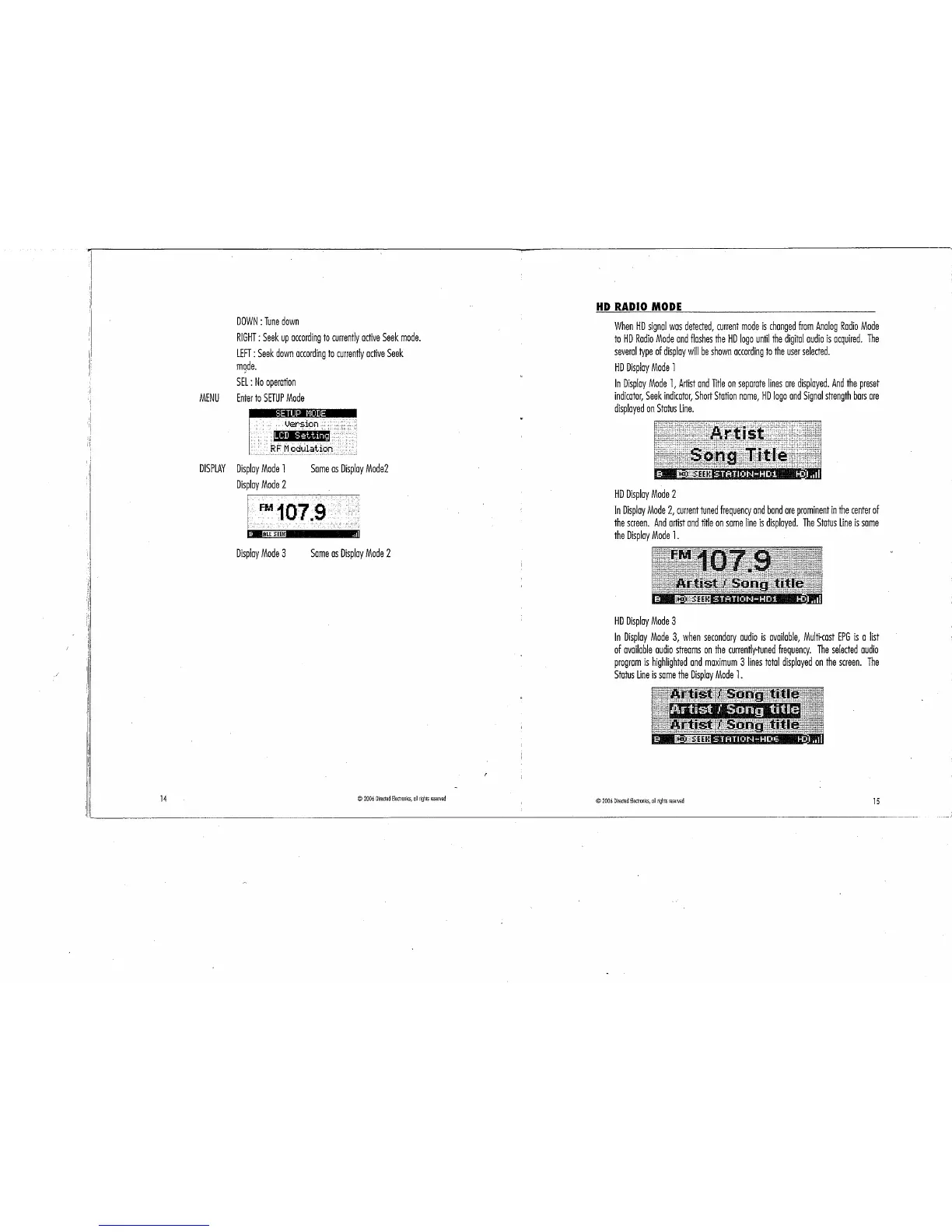 Directed DMHD1000 - HD RADIO MODE; HD Display Mode 1; HD Display Mode 2; HD Display Mode 3