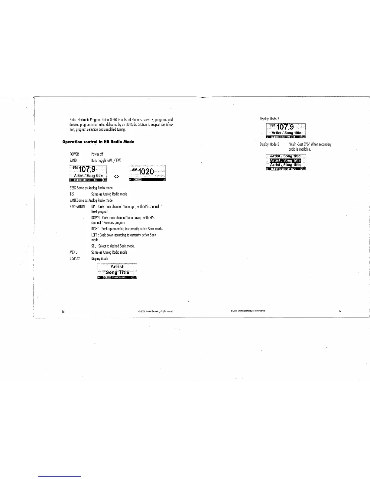 Directed DMHD1000 - Operation control in HD Radio Mode; NAVIGATION; MENU; DISPLAY