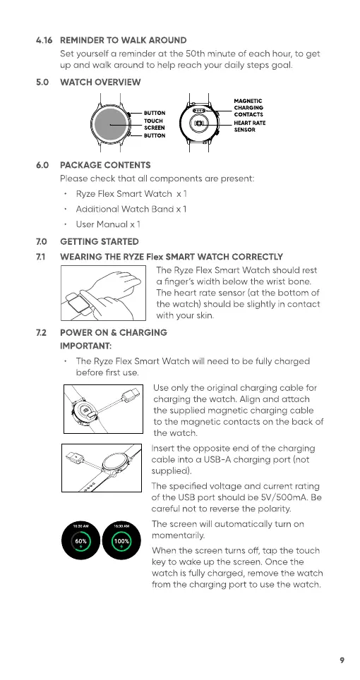 Directed Ryze Flex - Getting Started with Your Watch; Reminder to Walk Around; Watch Overview; Package Contents