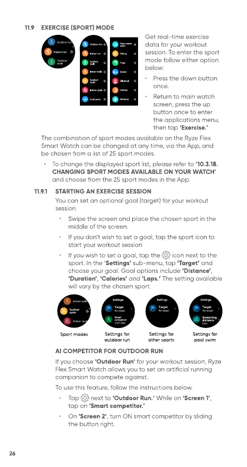 Directed Ryze Flex - Exercise Modes and Sessions; Exercise (Sport) Mode; Starting an Exercise Session