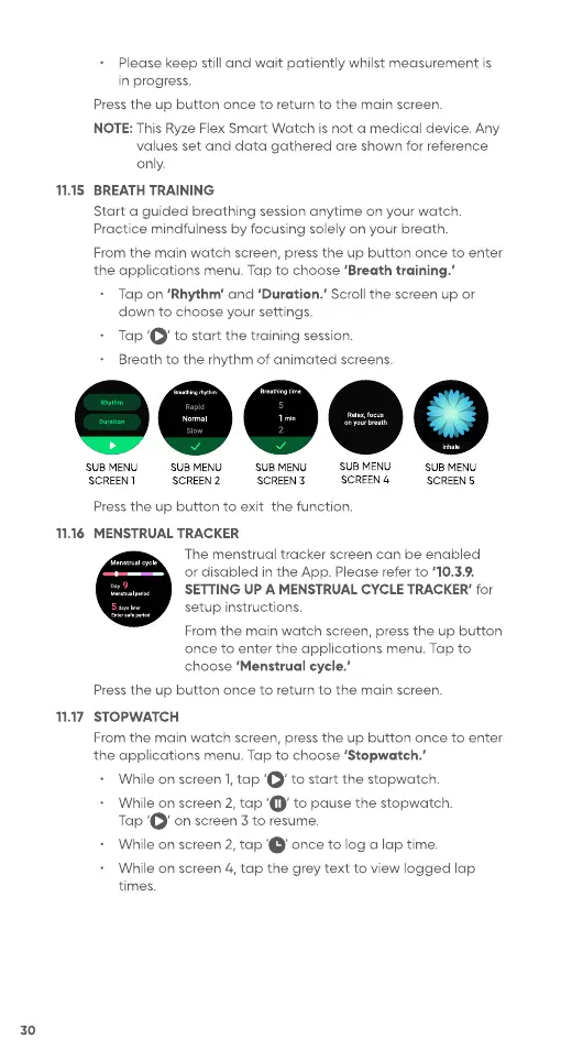 Directed Ryze Flex - Watch Utilities and Tools; Breath Training; Menstrual Tracker; Stopwatch