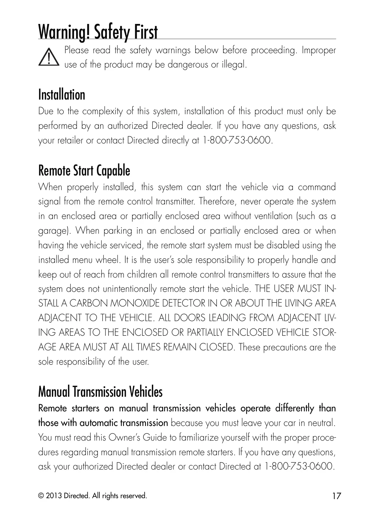 ask your authorized Directed dealer or contact Directed at 1-800-753-0600.