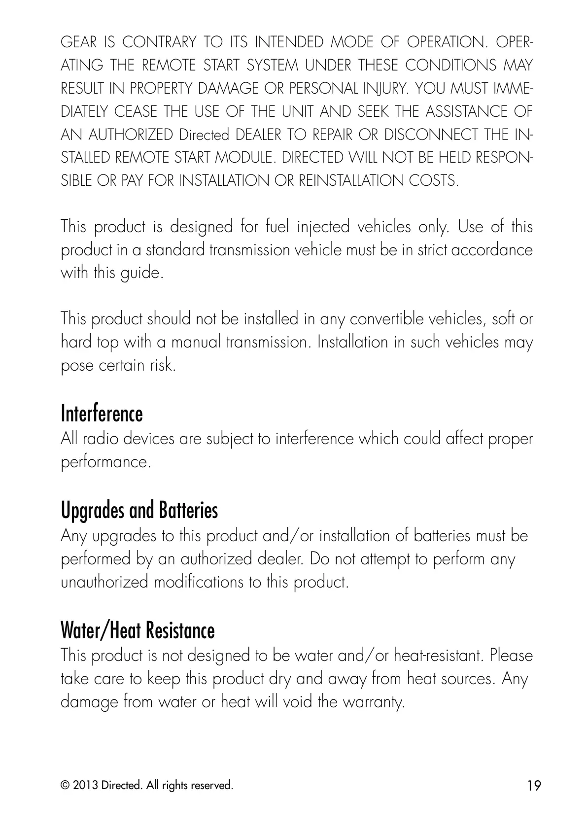ATING THE REMOTE START SYSTEM UNDER THESE CONDITIONS MAY