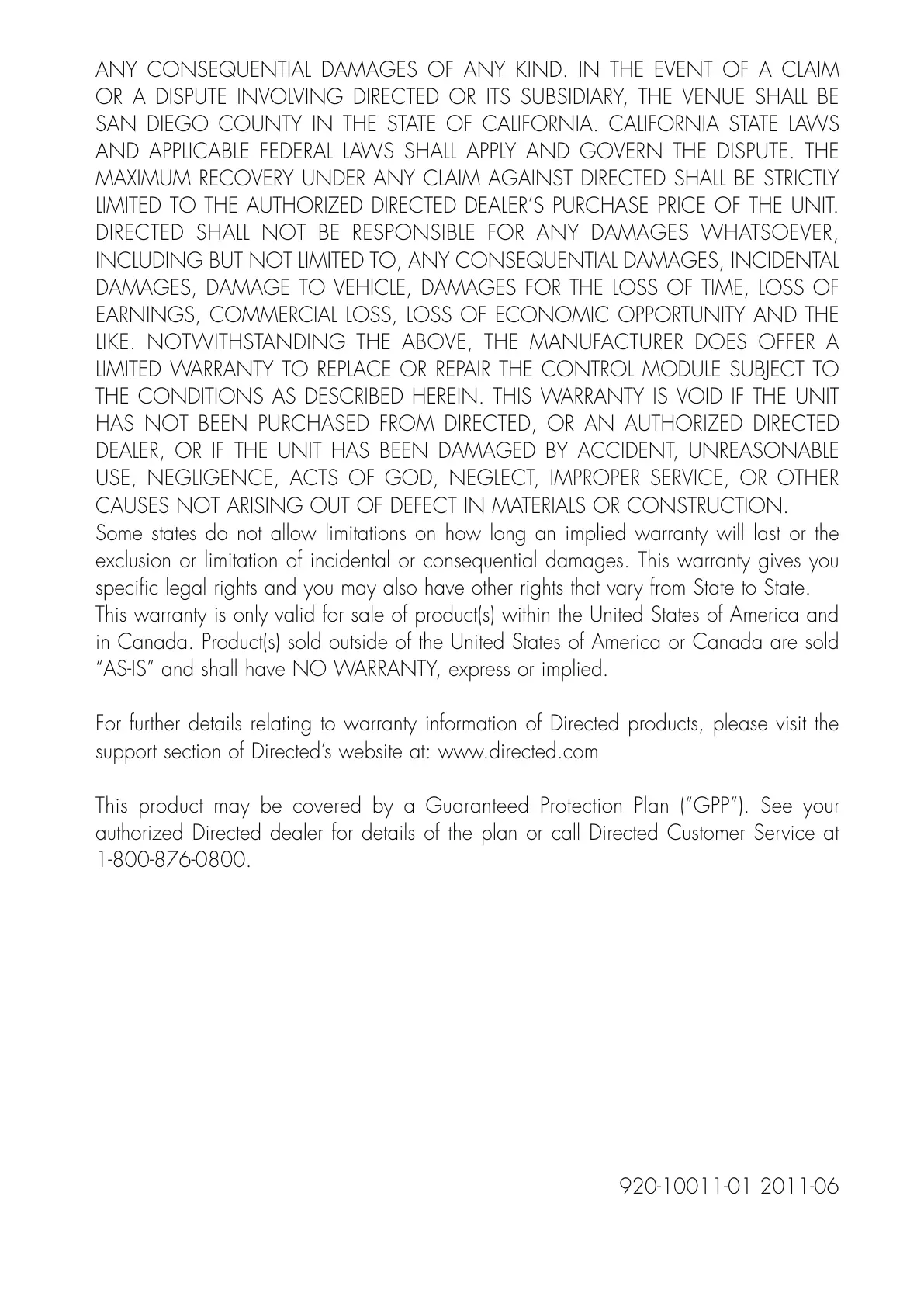 authorized Directed dealer for details of the plan or call Directed Customer Service at