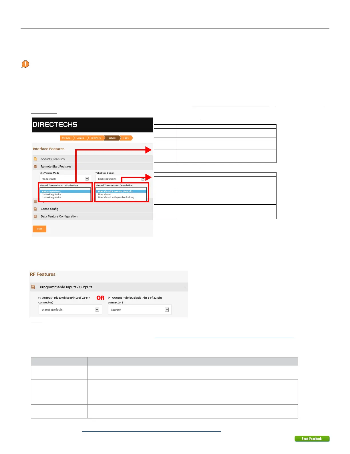 1. In the Remote Start Features section, select the desired configurations for Manual Transmission Initialization & Manual Transmission