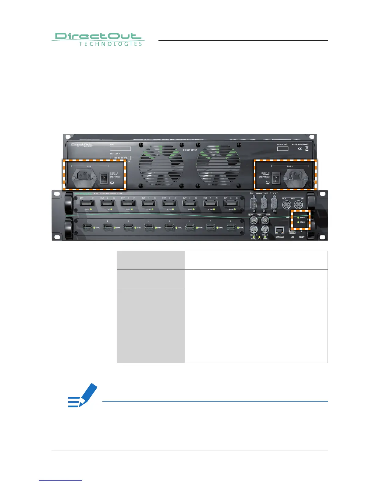 PSU 1 & PSU 2 (front) 2 LEDs (green): indicate the status of both