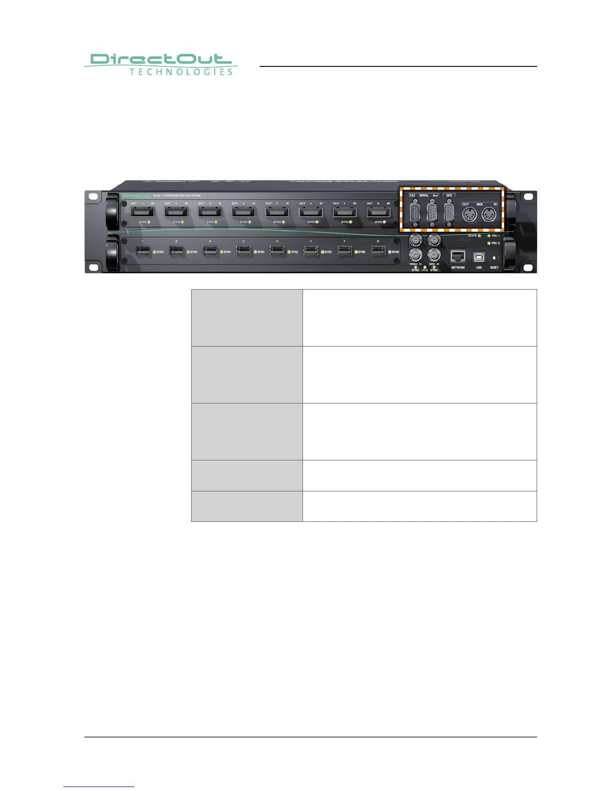 other DirectOut devices and RME products. Tunneling of RS-232 and RS-4xx data